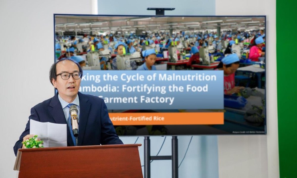该项目由日本政府资助,核心措施是在工厂食堂及周边零售店推广食用营养强化米,以解决服装工人群体中普遍存在的营养匮乏问题。考虑到柬埔寨服装业以女性劳动力为主,该项目对改善女性健康、预防贫血及相关并发症具有重要意义。