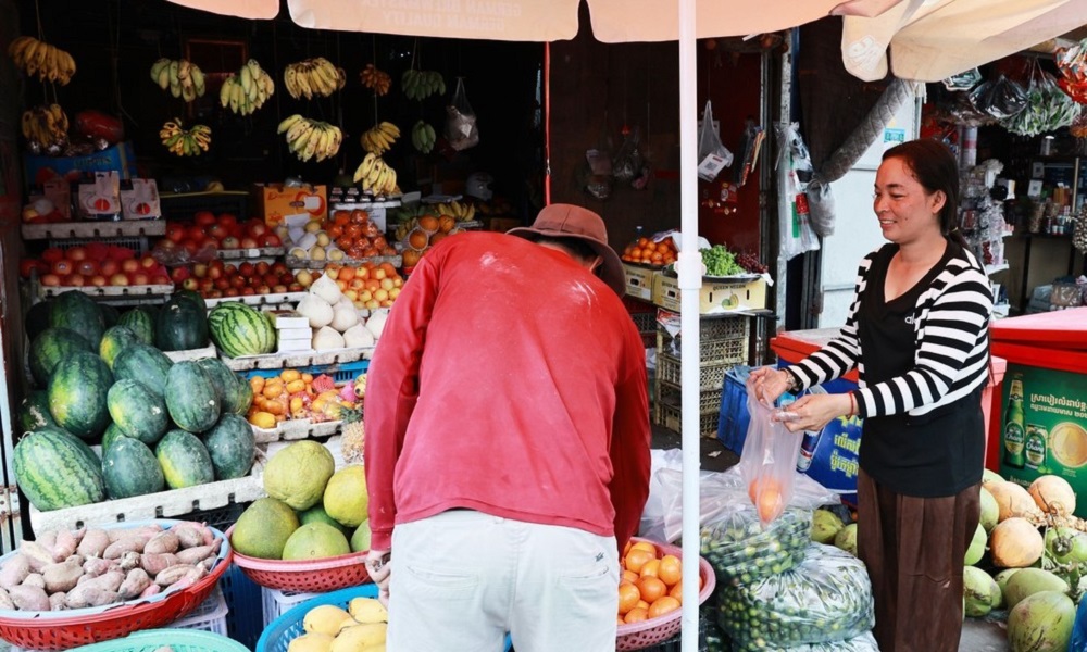 在特区生活区,一家水果店总是格外热闹。店主娜丽正忙着为下班的工人称水果、打包订单。