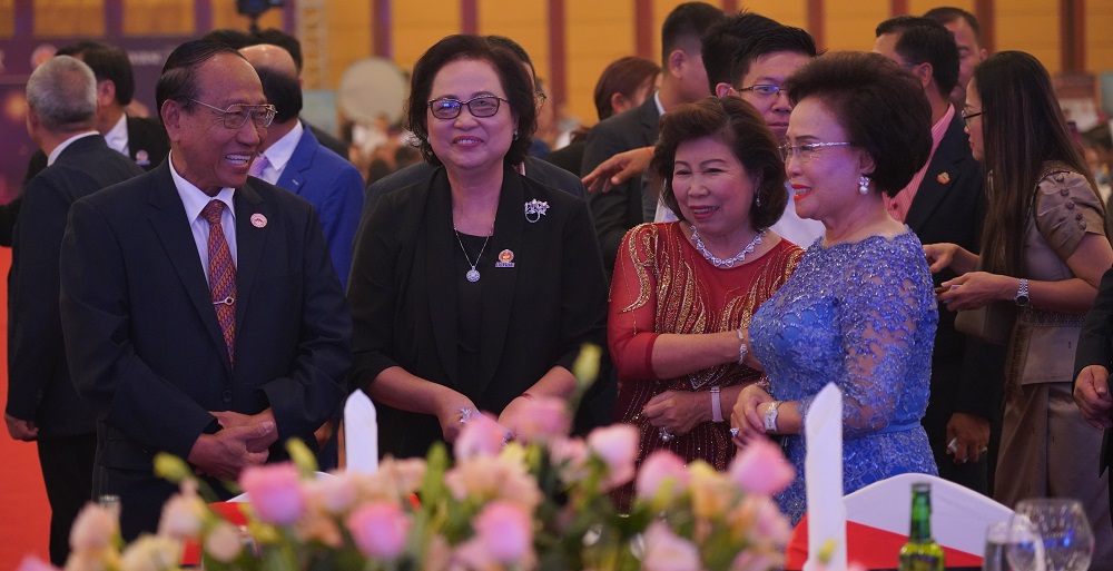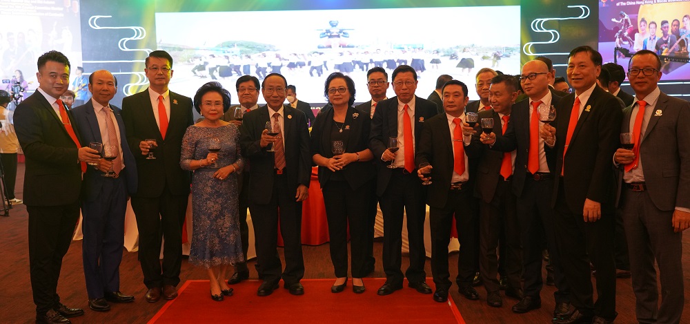 近日,迎国庆·贺中秋联欢晚会暨柬埔寨中国港澳侨商总会、柬埔寨香港商会第十届理事会就职典礼在钻石岛隆重举行。柬中友好协会主席艾森沃、中国驻柬大使馆公使衔参赞赵海燕、柬华理事总会监事长郑源来公爵、集茂集团董事长陈玉叶公爵、香港特区驻曼谷经济贸易办事处处长林俊华、香港贸易发展局东南亚及南亚首席代表何建荣、柬埔寨经济特区招商网及各商会代表等众多嘉宾参加。