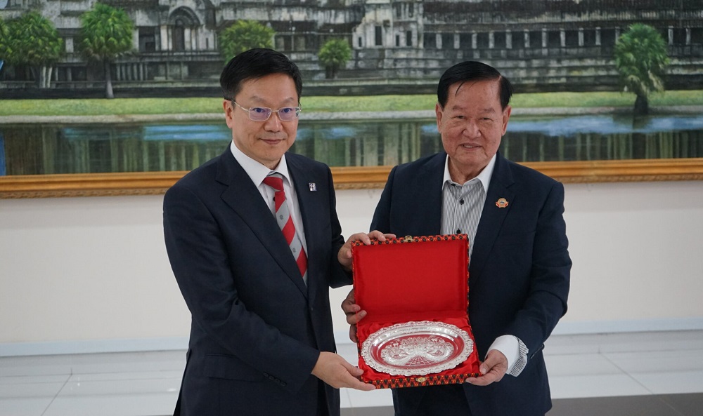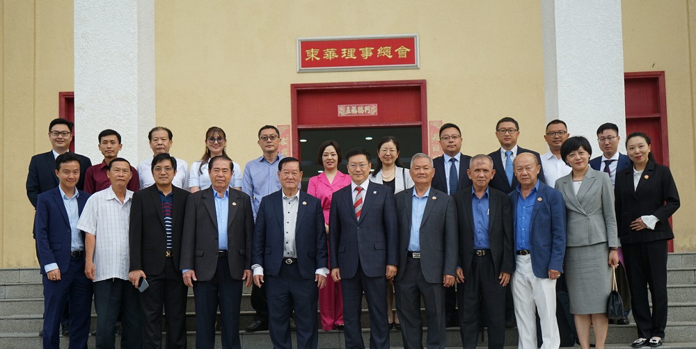 柬华理事总会轮值会长郑棉发勋爵对胡主任及语合中心各位领导的到访表示最热烈的欢迎。郑棉发勋爵指出,中外语言交流合作中心是负责对外汉语教学、汉语国际推广和中外语言文化交流的中国教育部直属单位,与柬华理事总会具有长期的合作关系,每年都给我们派来百位志愿者老师,支持华校的教学工作。今年是疫情后开放的第一年,就有140名志愿者老师派到24家华校,另有6位志愿者老师派到柬华理工大学孔子学院任教。