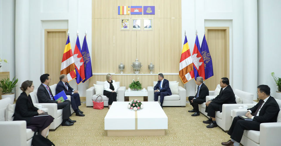 柬埔寨投资促进网获悉,近日,柬埔寨副首相兼外交部部长宋金达与美国国务院东亚和太平洋事务局国务卿副助理梅丽莎·布朗举行会谈,双方表示将加强两国的互利合作。柬美双方重申致力于进一步扩大贸易、投资、发展援助、人文交流等各领域互利合作。
