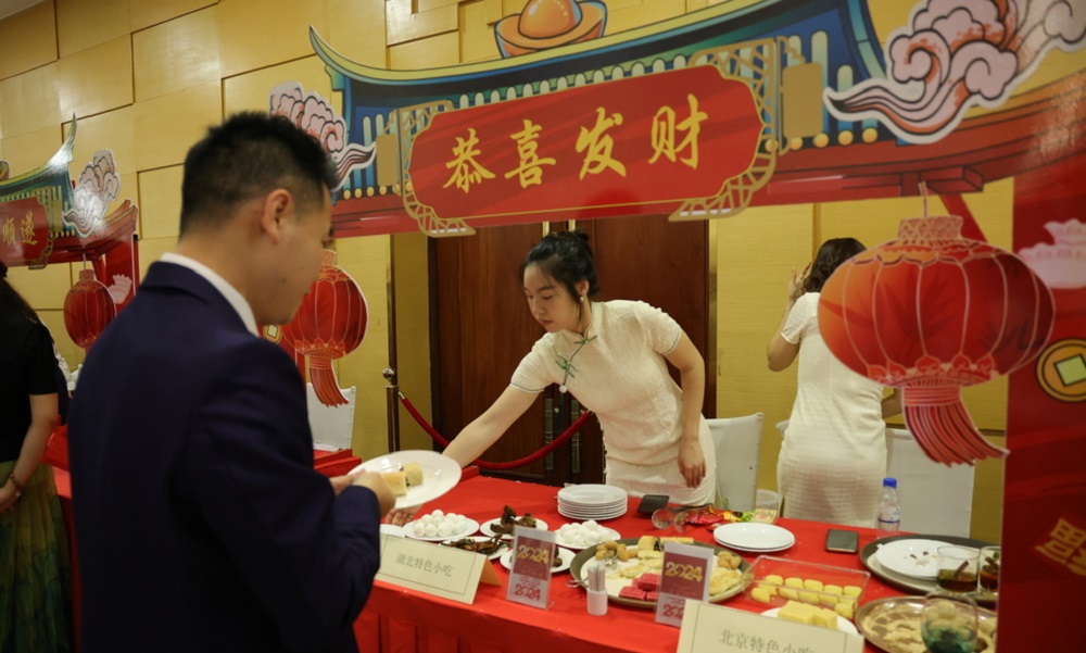 招待会现场设计了舞狮表演和书法、乐器、茶艺及特色小吃展示,年味十足,来宾们踊跃参与,气氛喜庆热烈。现场还播放了“中柬友好65周年”“美丽中国”等视频、图片展,中柬经典图书互译作品展。嘉宾们纷纷盛赞新时代中国发展成就和中柬命运共同体成果,衷心祝愿两国繁荣昌盛、国泰民安、兄弟情长、世代相传。