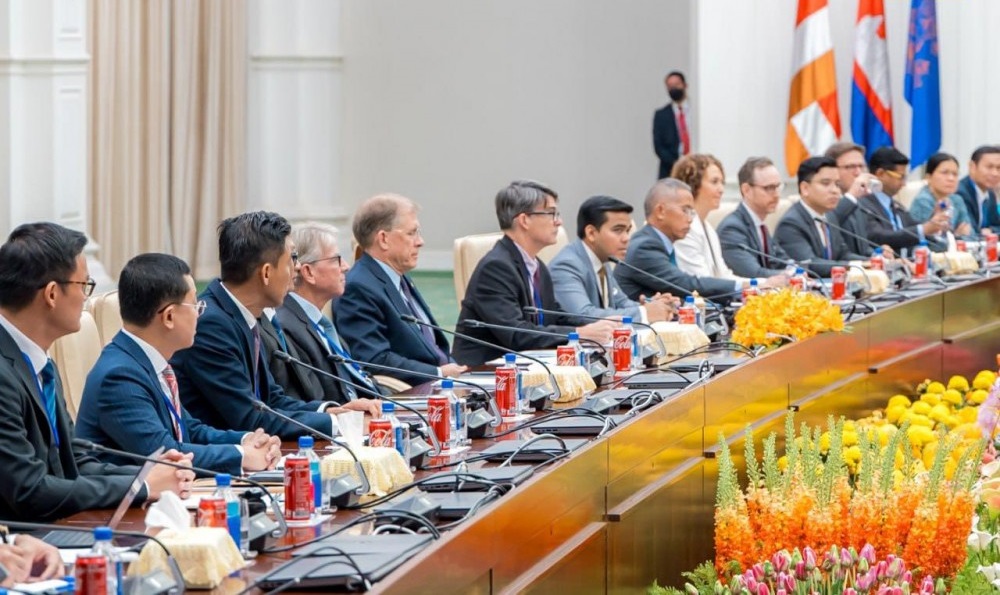近日,美国-东盟商业理事会(USABC)高级副总裁兼区域董事总经理布莱恩•D•麦克菲特斯率领代表团一行拜访柬埔寨总理洪玛耐,透露美国17家大型企业有意加大对柬埔寨的投资。布莱恩•D•麦克菲特斯高度赞赏柬埔寨各个领域取得高速发展。