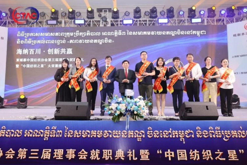 2024年3月30日晚,“海纳百川,创新共赢”柬埔寨中国纺织协会第三届理事会就职典礼暨 "中国纺织之星" 大奖赛 颁奖典礼,在金边永旺二白宫大礼堂隆重举行。这是柬埔寨中国纺织协会时隔四年的一次大聚会,全场400个席位座无虚席,全场洋溢着欢乐热烈。