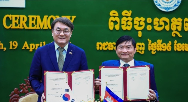 据柬埔寨投资促进网获悉,劳工部部长兴索近日与韩国雇佣劳动部韩国人力资源开发机构主席李宇勇共同签署关于根据韩国外籍劳务雇用许可制(EPS)派遣劳工协议。