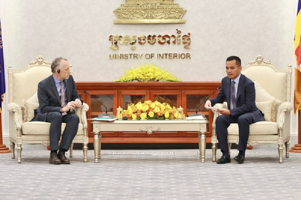 近日,柬埔寨副总理兼内政部长苏速卡会见联合国驻柬协调员Joseph Scheuer一行,双方就进一步加强双边合作关系等事宜进行会谈。