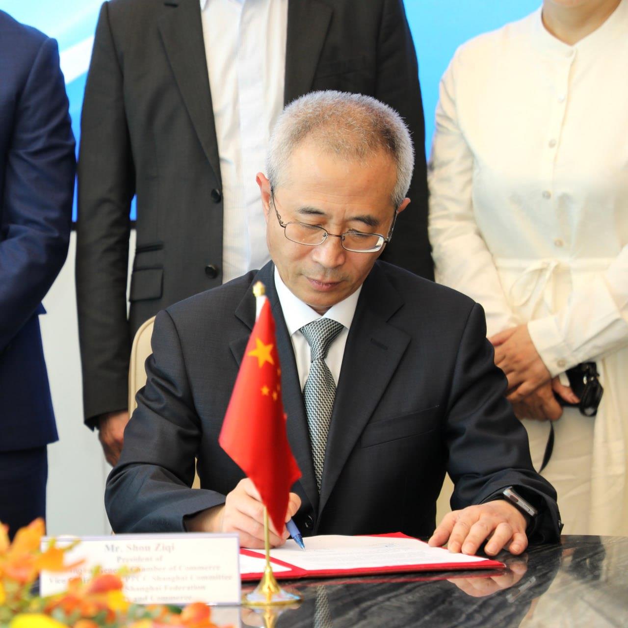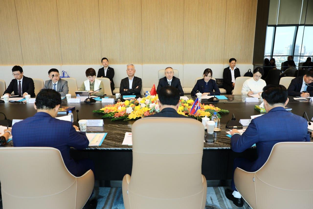 2024年5月27日上午,柬埔寨总商会会长陈丰明公爵会见中会见了中华全国工商业联合会副主席、上海市工商联主席寿子琪率领代表团一行,并举行了座谈。在座谈上,柬埔寨总商会和中华全国工商业联合会签署谅解备忘录,旨在加强柬中两国经贸和投资做出贡献。