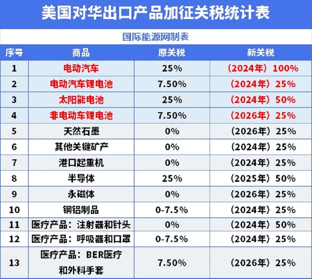 8月1日起美国对华光伏产品、电动汽车等产品加征关税