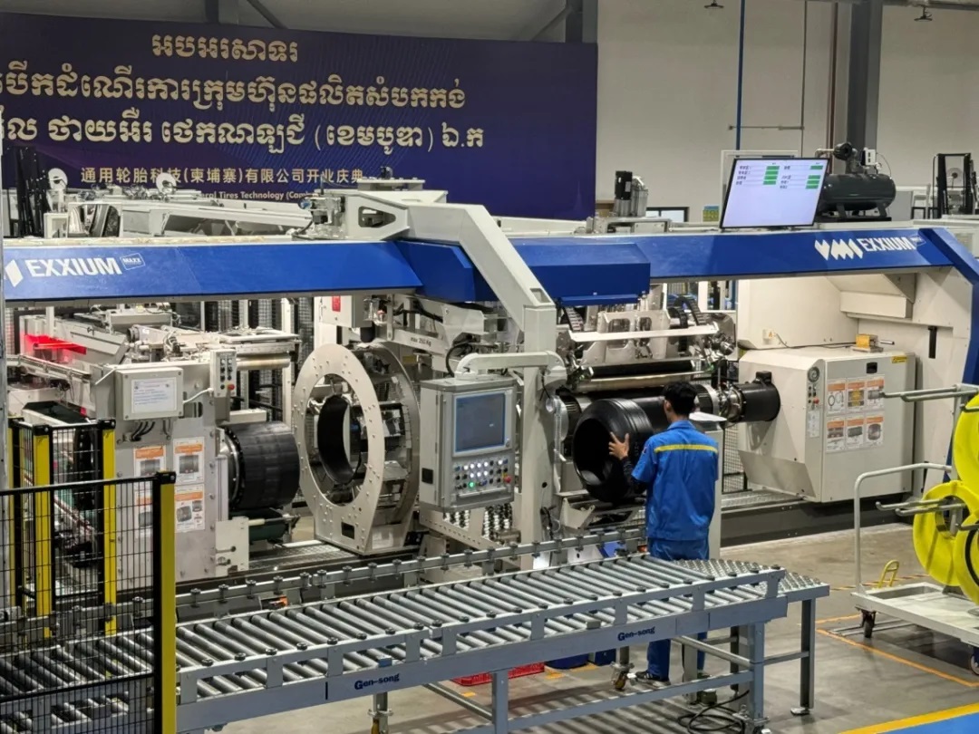 走进通用轮胎科技(柬埔寨)有限公司,目之所及都是智能化的生产设备。工厂内建有13个立体智能仓库,91个机器人,从半部件到一条20寸的轮胎成型,仅需33秒的时间就完成了。通用轮胎科技自2023年5月正式开业以来,仅一年时间,一期项目就实现了全面达产。如今,该公司正在加快推进二期项目建设。一期、二期全部达产后,将具备年产850万条半钢子午胎和165万条全钢子午胎的生产能力。