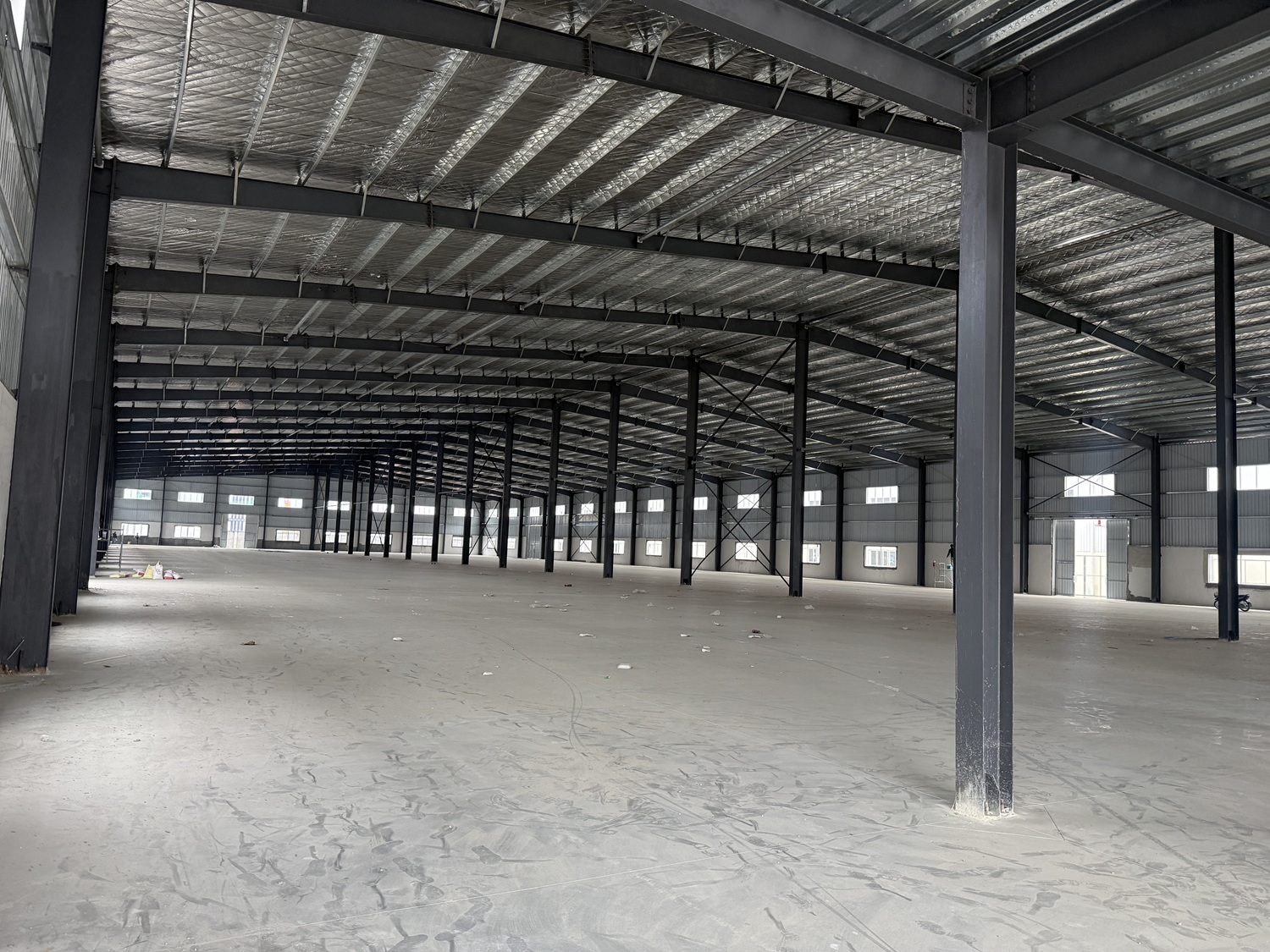 占地面积8950平方,厂房面积6800平方、顶高12.5米,屋檐(滴水)高10.5米,地面承重8吨,隔层承重2吨、单层结构,跨距25米、柱距8米、外围可搭雨棚,但不能全封闭隔断。无独栋办公室及宿舍安排。