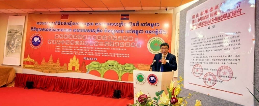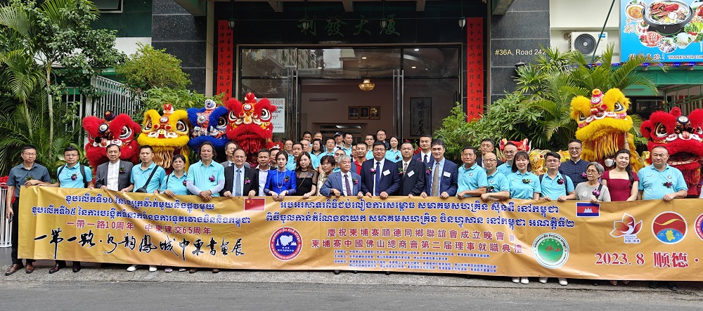 代表着柬埔寨和中国友好合作,更象征着柬中两国对未来合作的美好展望——柬埔寨顺德同乡联谊会成⽴庆典暨柬埔寨中国佛山总商会第二届理事就职典礼于9日晚隆重举行。柬埔寨副总理棉森婉亲王、中国广东省佛山市顺德区人民政府代表团、柬埔寨顺德同乡联谊会会员、柬埔寨中国佛山总商会会员等到场祝贺。