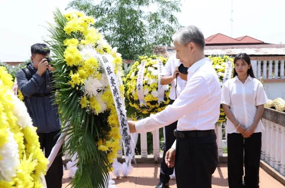 缅怀英烈:汪文斌大使与柬华社代表祭扫罗锦春烈士墓