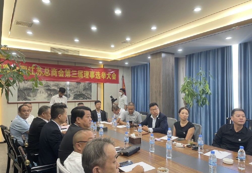 12月10日下午,柬埔寨中国江苏总商会第三届理事会举行第一次全体会员大会。会上,大会首先通报第三届理事会选举结果,即:吴金艮当选会长,张勇当选秘书长,董廷峰当选执行会长,朱帅当选监事长,汤奇、江晓伟、江庆华、陆卫东、盛家谦、张海龙当选常务副会长。