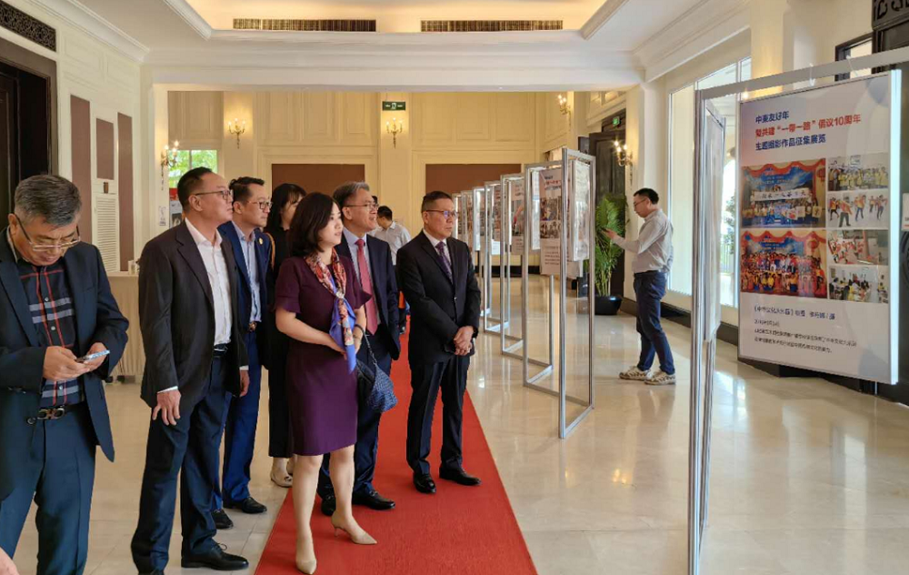 年会上,柬埔寨中国商会与中国新闻图片网联合举办了“中柬友好年” 暨“共建‘一带一路’倡议十周年”双主题摄影作品征集展览的颁奖仪式。驻柬使馆经商参赞钟洁、柬华理事总会代表、柬埔寨中国港澳侨商总会代表、柬埔寨台商协会代表、柬埔寨投资促进网代表、20多家地方商协会代表、援柬中国中医医疗队成员、中柬媒体代表等以及柬埔寨中国商会全体会员共550余人参加了此次年会活动。
