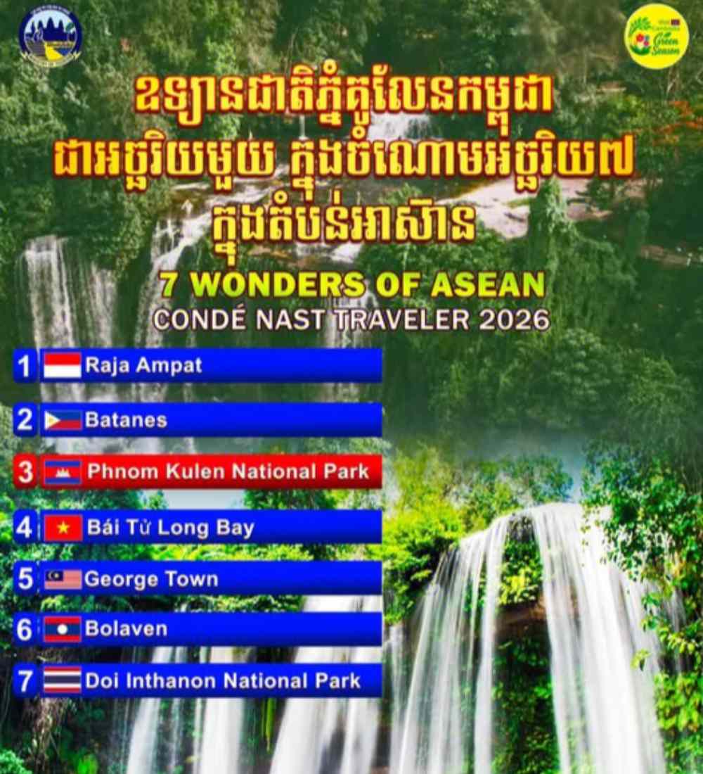 柬埔寨投资促进网报道,据柬埔寨旅游部2026年3月4日发布的官方消息,暹粒省荔枝山国家公园正式入选东盟七大奇观,成为该榜单七大标志性目的地之一。本次评选结果,来自国际知名旅游媒体《康泰纳仕旅行者》2026年3月发布的专项研究报告。