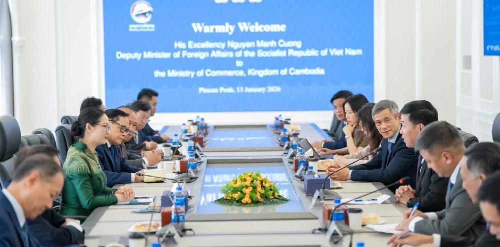 商业部长占妮莫近日在金边会见越南外交部副部长阮孟强(Nguyen Manh Cuong),双方就持续推动双边贸易增长及深化经贸合作进行会谈。柬埔寨与越南一致同意加快推进双边经济合作,力争将双边贸易额提升至200亿美元,以进一步巩固两国经贸关系并拓展区域产业链合作空间。