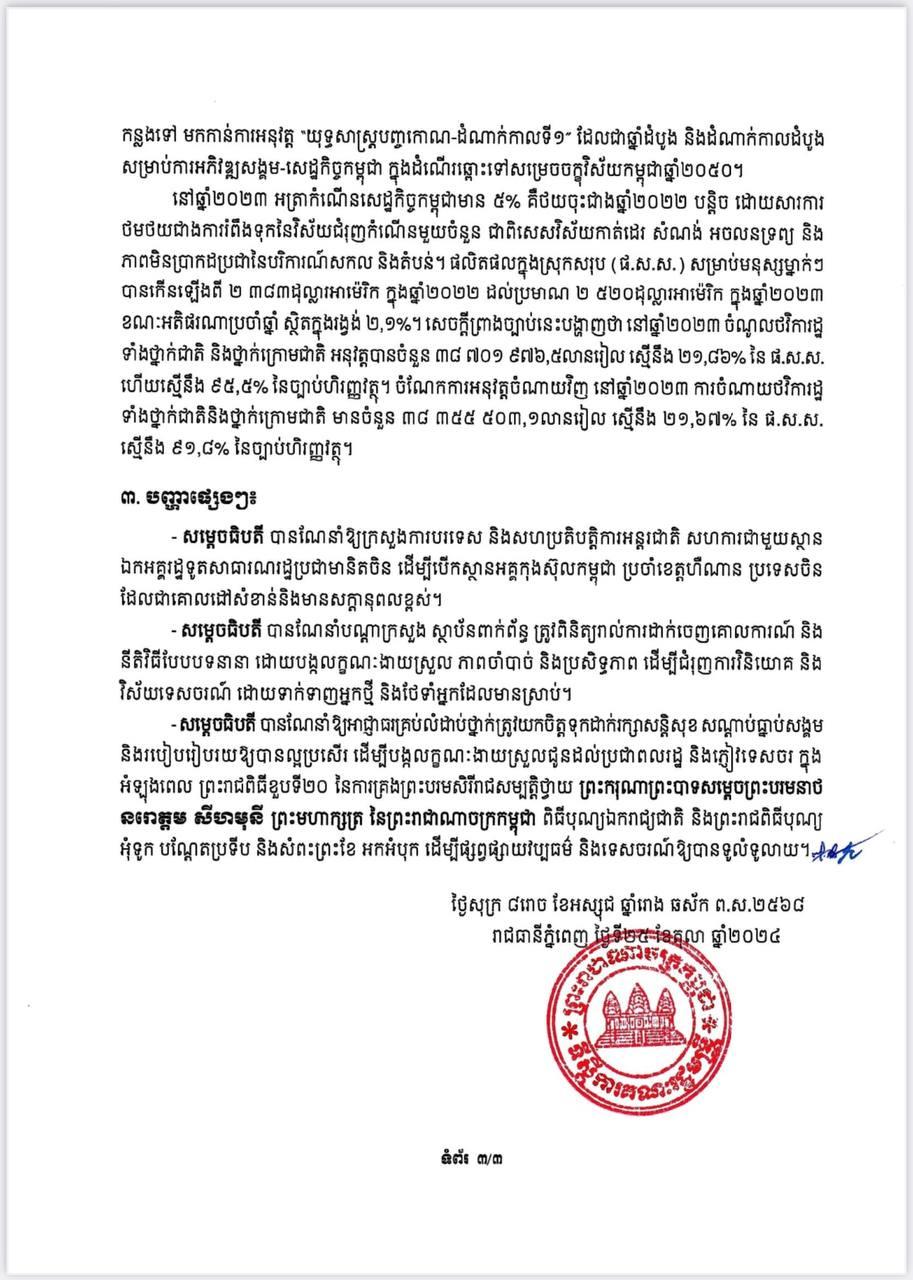洪玛耐总理于2024年10月25日上午在总理府主持内阁全体会议时,作出上述的指示。这是根据王国政府发言人机构发布内阁全体会议结果的通告的消息。