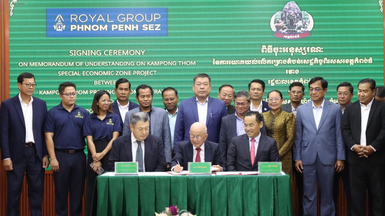近日,皇家集团金边经济特区有限公司与磅通省政府正式签署谅解备忘录。双方将围绕在磅通省规划建设占地300公顷的“农工业园”开展可行性研究,旨在深度加工各类农产品,提升当地农业附加值。签署仪式由磅通省省长努帕洛与皇家集团金边经济特区有限公司首席执行官上松裕士共同主持。